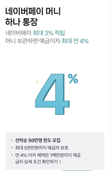 - 상품명: 네이버페이 머니 하나 통장