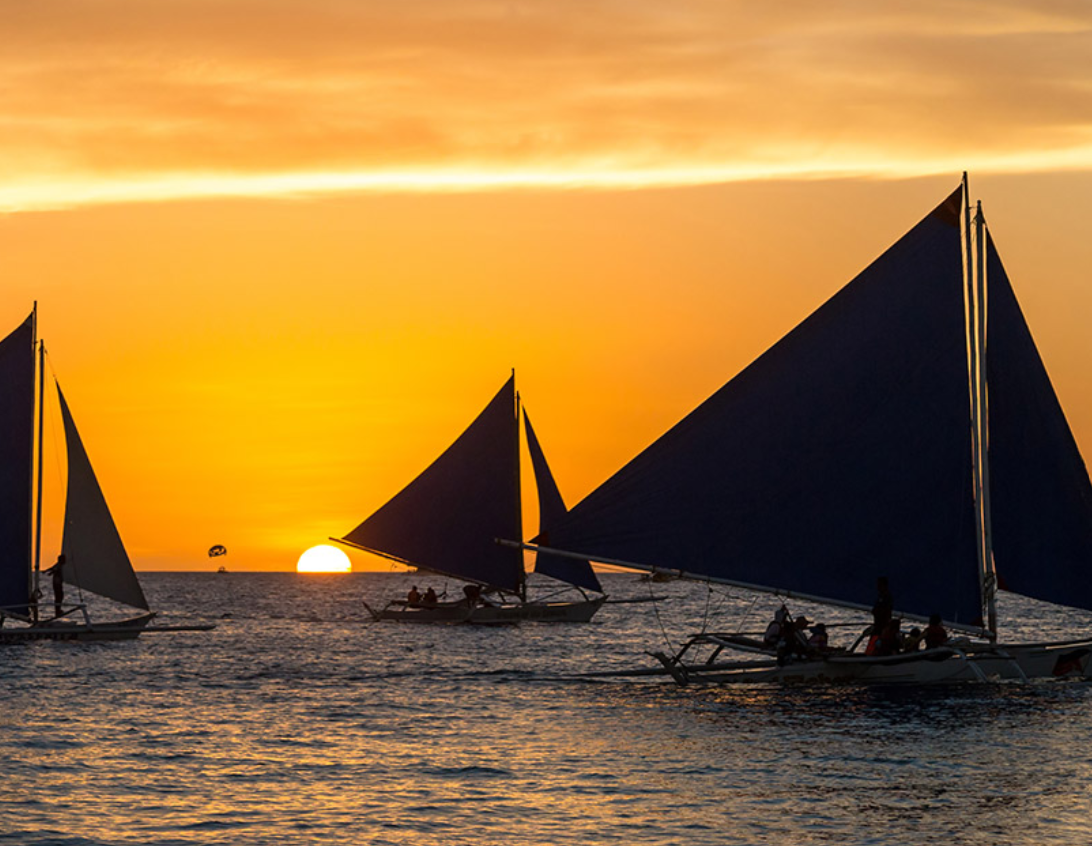 보라카이는 야자수가 있는, 하얀 백사장의 에메랄드 빛 해변으로 유명한 필리핀 대표 여행지 입니다. 보라카이 하면 선셋이 특히 아름다운데요 선셋이 있는 시간에 진행하는 선셋세일링을 즐기며 인생샷 남기는 분들을 많이 찾아 볼 수 있습니다.