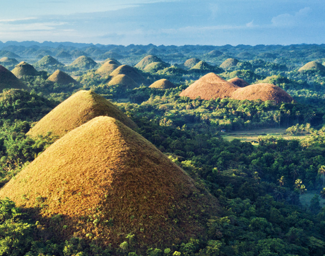 특히 보홀 여행객들이 필수로 들리는 여행지는 "초콜렛힐"인데요, 초콜렛힐은 마치 키세스 초콜렛을 연상시키는 언덕이 수없이 조성되어 있어 붙은 이름입니다.(정확히는 1270개 가량이라고 하네요!). 또한, 필리핀 보홀에서는 여러가지 나비를 볼 수 있는 "나비농장", 안경원숭이를 볼수 있는 "안경원숭이 투어"등 육상 관광지도 잘 조성되어 있습니다.