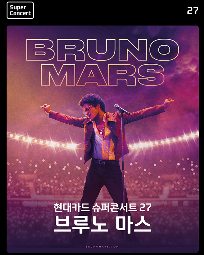 안녕하세요, 이번에 제가 정말 좋아하는 가수인 브루노 마스 내한 콘서트 안내가 오픈되었습니다.