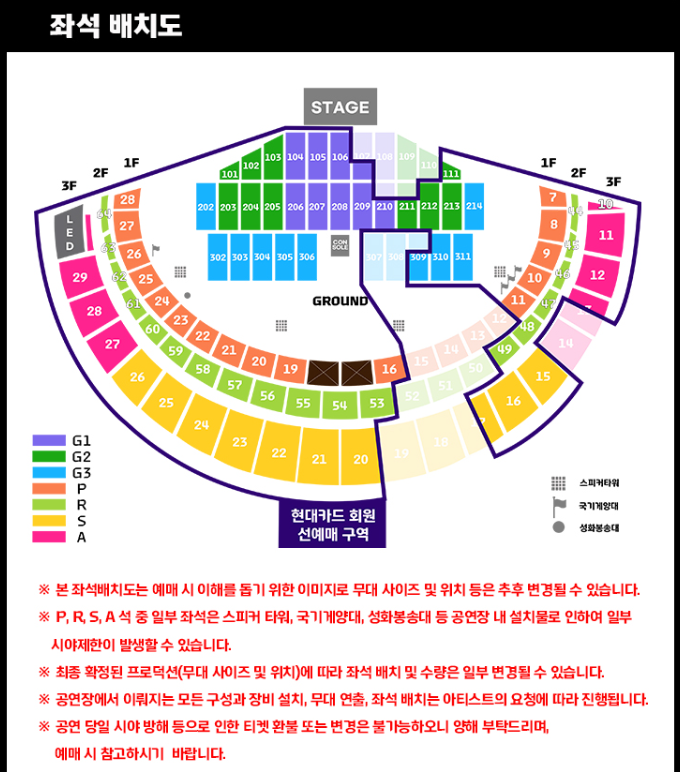 공연장이 워낙 넓다 보니 좌석 등급이 7개입니다. 가까이에서 보면 볼수록 좋겠지만, 가격 부담과 예약 경쟁률이 세다 보니 어려울 수 있을 것 같습니다. 제 생각에는 브루노마스 노래들이 유명한 것들이 많고 떼창을 유발하는 곡들이다 보니 2층, 3층에서 공연을 보아도 아쉬움 없이 충분히 재밌게 볼 수 있을 것 같습니다.