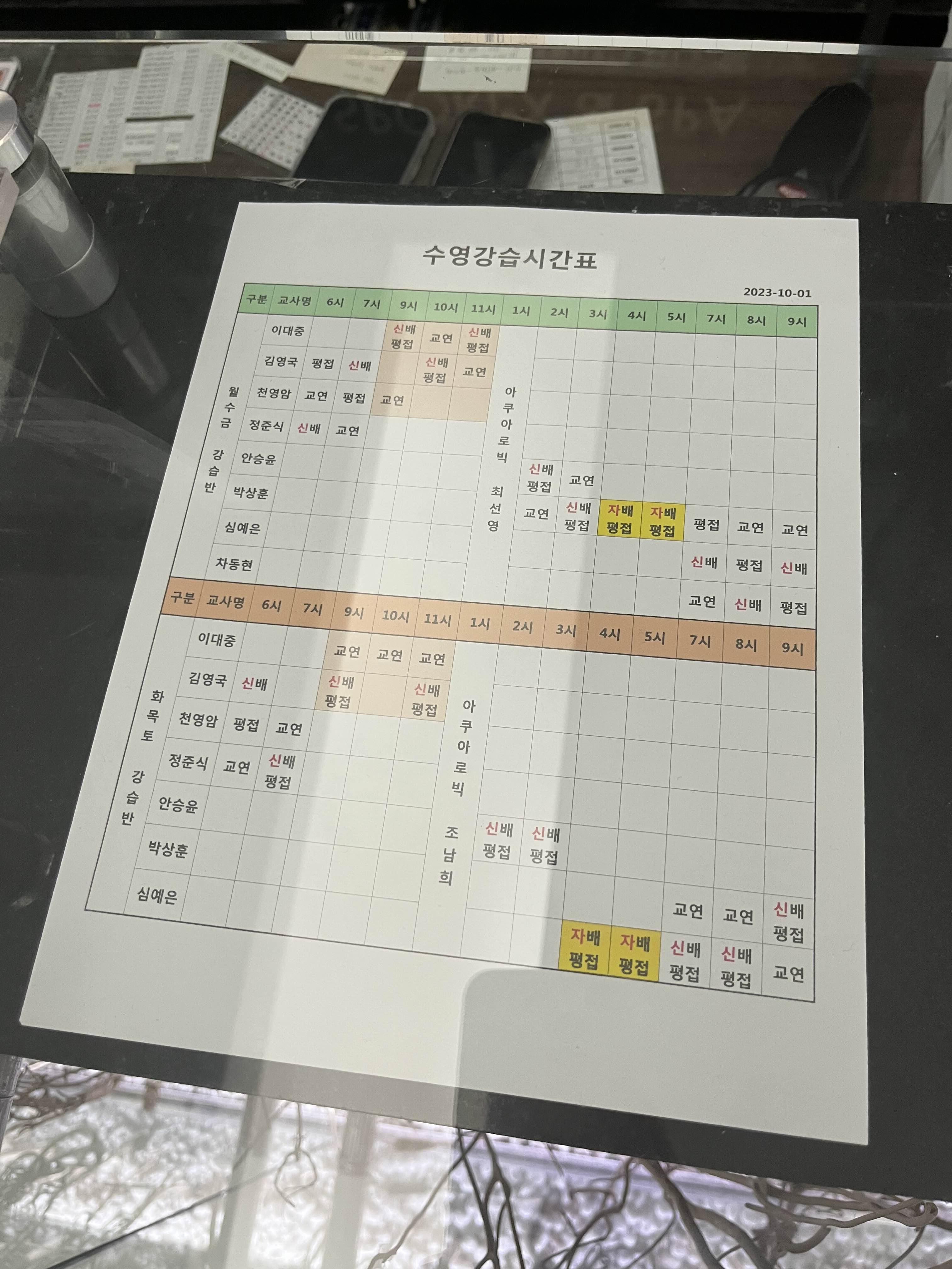 제가 자유수영으로 수영장 방문 했을 때 아쿠아로빅 수업 진행중이었는데,